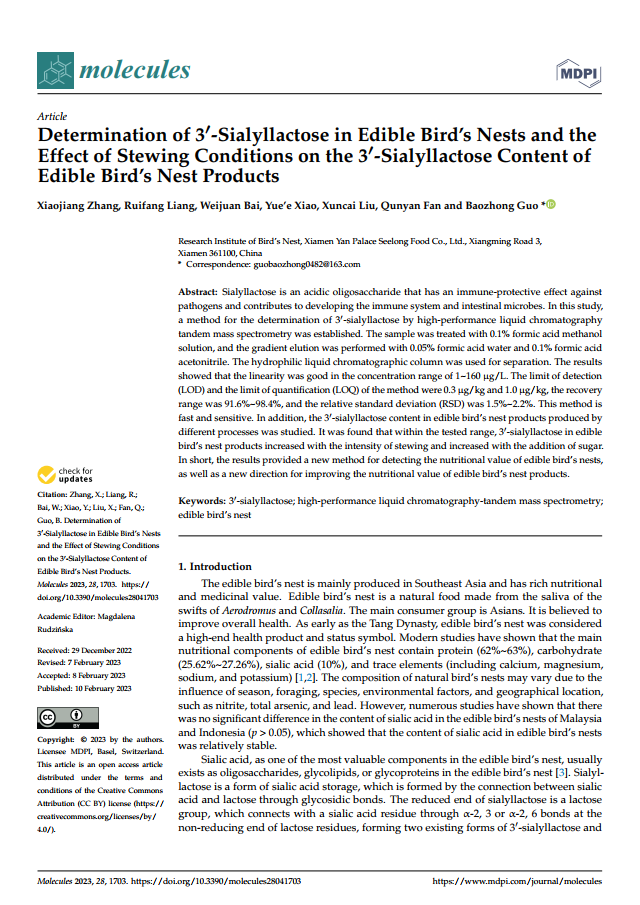 《Determination of 3'-Sialyllactose in Edible Bird's Nests and the Effect
