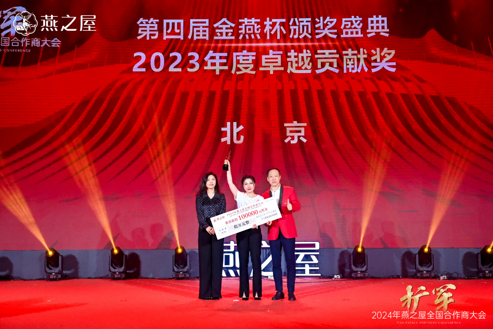 大會(huì)前夕,燕之屋特別舉辦擴(kuò)軍·2024年燕之屋全國合作商大會(huì)歡迎晚宴,以及中央廣播電視總臺(tái)云聽&燕之屋聯(lián)合數(shù)字黨建室暨愛的詩篇特別歌詠活動(dòng)。知名主持人黃薇,著名主持人、朗誦藝術(shù)家陳鐸,國家一級(jí)演員宗平,知名歌手黃英、蔡淳佳呈送精彩節(jié)目,共譜愛的詩篇。大會(huì)當(dāng)晚,擴(kuò)軍·2024年燕之屋全國合作商大會(huì)答謝晚宴傾情開啟,并同步舉行第四屆金燕杯頒獎(jiǎng)盛典,表彰、嘉獎(jiǎng)為全國市場(chǎng)做出了突出表現(xiàn)的個(gè)人與市場(chǎng),感謝杰出伙伴為燕之屋點(diǎn)亮堅(jiān)實(shí)前行的璀璨坐標(biāo)?,F(xiàn)場(chǎng),2023年度卓越貢獻(xiàn)獎(jiǎng)、2023年度杰出貢獻(xiàn)獎(jiǎng)、2023年度金牌終端獎(jiǎng)、2023年度金燕薈先鋒獎(jiǎng)、2023年度創(chuàng)新突破獎(jiǎng)等眾多獎(jiǎng)項(xiàng)花落各家,再一次激發(fā)全員熱情與斗志。