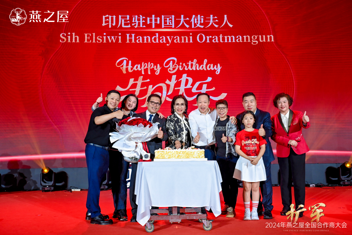 當(dāng)天,燕之屋生態(tài)產(chǎn)業(yè)園同步開園,與燕之屋全國合作商大會(huì)的召開可謂雙喜臨門。燕之屋創(chuàng)始人、董事長(zhǎng)黃健在祝酒詞中說道:“今天是一個(gè)值得銘記的日子,是燕之屋發(fā)展歷程中新的里程碑,我們共同見證了燕之屋生態(tài)產(chǎn)業(yè)園的盛大開園,在全國合作商大會(huì)上共同探討了行業(yè)趨勢(shì)、分享了成功經(jīng)驗(yàn),進(jìn)一步鞏固了我們的合作關(guān)系。我相信,在未來的日子里,我們將攜手并進(jìn)、共創(chuàng)輝煌。”此外,大會(huì)當(dāng)日亦是印尼駐中國大使夫人“依布魏魏可歐拉蠻古”的生日,燕之屋為她送上生日蛋糕與祝福。晚宴上,精彩紛呈的歌舞表演“碗”美呈現(xiàn)撼動(dòng)人心的視聽盛宴,使得在場(chǎng)嘉賓情緒高漲,現(xiàn)場(chǎng)氛圍熱烈非凡。