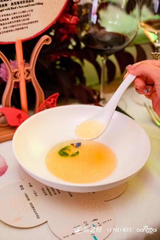 燕窩,被譽(yù)為“東方珍品”,是中式飲食文化的璀璨明珠。隨著時(shí)代的發(fā)展,燕窩的食用方式演變出更多可能,虜獲食客味蕾。魯采,國(guó)內(nèi)一家以魯菜榮膺“米其林”的餐廳,品牌長(zhǎng)期致力于高端食材領(lǐng)域的鉆研,現(xiàn)今已成為L(zhǎng)U STYLE生活美學(xué)集合體。此次盛宴,燕之屋聯(lián)合魯采米其林廚師團(tuán)隊(duì)創(chuàng)制專屬燕窩菜品——清湯燕窩,精選燕之屋高品質(zhì)燕窩為原料入菜,經(jīng)魯采廚師團(tuán)隊(duì)精心烹調(diào),湯汁濃郁鮮美,激發(fā)味蕾的咸鮮之感的同時(shí),更以新穎獨(dú)到的方式傳遞燕窩健康滋養(yǎng)之美,帶給舌尖和心靈的雙重享受。而由燕之屋聯(lián)手世界甜品大師葉衛(wèi)大師匠心打造的燕之屋·龍騰燕舞·燕窩爆果粒冰晶粽則作為晚宴甜品,驚艷亮相。每一枚粽子內(nèi)餡中含有350mg的燕窩投料,晶瑩的燕窩流心內(nèi)餡肉眼可見(jiàn),提前傳遞“端午安康”的美好祝福。