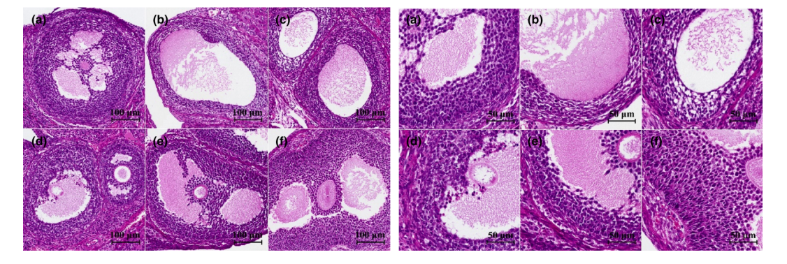 圖:燕窩對(duì)卵巢早衰組織病理學(xué)影響。(a)正常對(duì)照組,(b)模型對(duì)照組,