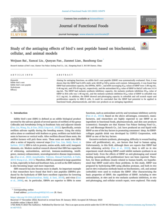 圖:燕之屋“Study of the antiaging effects of bird's nest peptide based