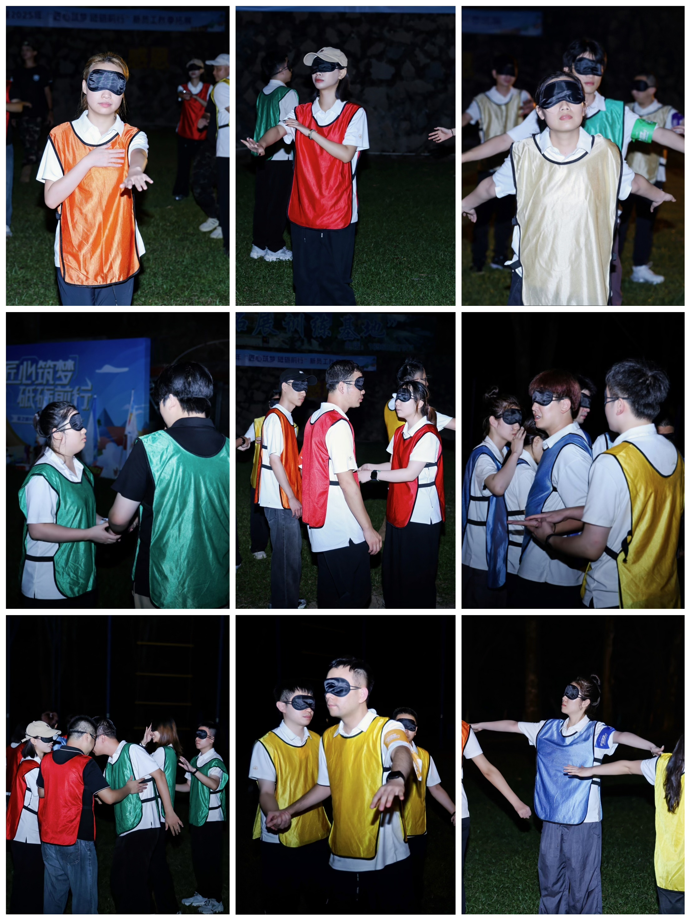 隨著夜幕降臨,“找回團(tuán)隊(duì)”項(xiàng)目將整場拓展推向新的高潮。隊(duì)員們被蒙住雙眼,在黑暗中尋找隊(duì)友,每當(dāng)遇到人的時(shí)候只能通過除語言外的其他方式及彼此默契來確認(rèn)是否是團(tuán)隊(duì)同伴。游戲過程中,已經(jīng)找回的隊(duì)友會(huì)被教官重新拆散,團(tuán)隊(duì)不僅需要再次找回成員,還需要緊緊守護(hù)隊(duì)友,堅(jiān)定彼此的選擇。那一刻,嘈雜的干擾聲遠(yuǎn)去,只留下對(duì)伙伴的信任指引方向。當(dāng)雙手終于相握,這份在困境中建立的羈絆,讓團(tuán)隊(duì)的凝聚力愈發(fā)堅(jiān)實(shí)。隨后的復(fù)盤會(huì)上,隊(duì)員們圍坐分享收獲、梳理經(jīng)驗(yàn),再一次體會(huì)到團(tuán)隊(duì)信任與凝聚的力量。