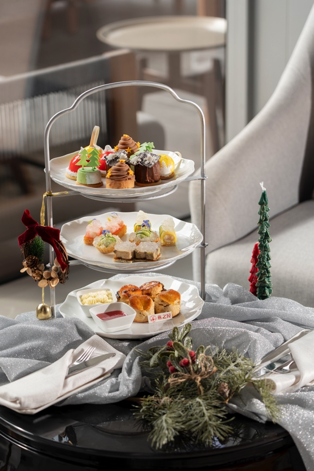 本次聯(lián)名下午茶精選燕之屋印尼核心產(chǎn)區(qū)燕窩,由廣州保利洲際酒店廚師團(tuán)隊(duì)創(chuàng)意烹制,呈現(xiàn)一系列兼具視覺美感與味覺層次的燕窩雅點(diǎn)。燕窩鵝肝批配無花果醬,鵝脂豐潤(rùn)與燕窩清雅相映成趣,無花果醬帶來甘美回韻;蟹肉龍蝦燕窩卷,海洋珍饈裹藏絲縷燕窩,鮮美與溫潤(rùn)完美交融,共譜新章;燕窩甜蝦配薄脆,鮮嫩甜蝦邂逅彈潤(rùn)燕窩,再搭配金黃薄脆,演繹出剛?cè)岵?jì)的味覺哲學(xué);牛油果燕窩球配青蘋果啫喱,口感層次豐厚,宛若自然韻律。四道匠心之作,譜寫咸點(diǎn)風(fēng)雅,搭配圣誕栗子撻、圣誕草莓奶酪小點(diǎn)等甜品系列,營(yíng)造甜蜜浪漫氛圍,勾勒節(jié)日詩篇。