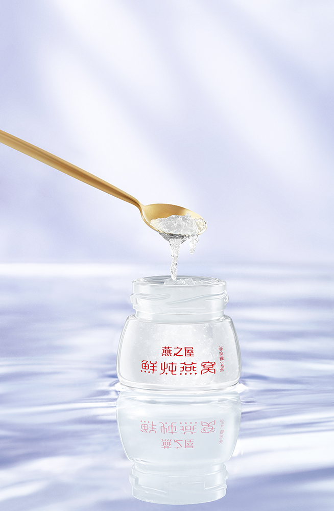 針對燕之屋的品牌格調(diào)和人體工學(xué)需求,潘虎對原有產(chǎn)品瓶型進行了創(chuàng)新性的改進,全新設(shè)計,采用更適合女性手掌握持的瓶身曲線,將重心下移,使開蓋更省力。玻璃質(zhì)感清透,配合燕之屋的精致標(biāo)識,穩(wěn)重而大氣,呈現(xiàn)出中國器皿的獨特美感。而且,燕之屋金標(biāo)鮮燉燕窩將瓶口加大,增添消費者用燕窩勺食用的方便性;加上上寬下窄的設(shè)計,科學(xué)的黃金比例更符合飲用習(xí)慣,方便直接食用,讓滋養(yǎng)隨時隨刻進行。